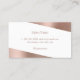 Elegant hairstylist business card featuring white and faux rose gold texture, scissors and modern calligraphy font.