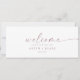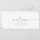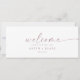 This modern rose hanging seating chart welcome header is perfect for a minimalist wedding. The simple blush pink rose gold colour design features unique industrial lettering typography with modern boho style. Customisable in any colour. Keep the design minimal and elegant, as is, or personalise it by adding your own graphics and artwork. The card prints on the front and back (double-sided). Please check the collection for the coordinating table number seating chart cards.