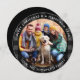 Modern Round Custom Photo Black Grey Buffalo Plaid Holiday Card