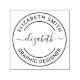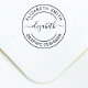 A modern professional custom self inking rubber stamp design featuring your first name in chic calligraphy script framed in a round circular shape with your full name and job title (or other preferred wording).