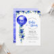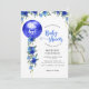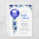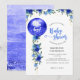 Modern Royal Blue Floral Balloon Boy Baby Shower Invitation