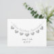 Modern white RSVP 25th silver wedding anniversary response card with heart bunting.