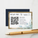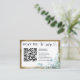 This elegant and modern RSVP card is a lovely addition to your wedding stationary. It features sage green botanical elements on a faux gold leaf surface with navy blue typography. Upload your own QR code and wedding website and email address. Combine all your information in one simple step. Easy to customise with your details.