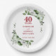 Modern Ruby 40th Wedding Anniversary Greenery Paper Plate