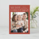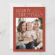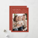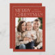 Modern Christmas photo card featuring "Merry Christmas" displayed at the top of the design in trendy white lettering with a rust background. Personalise the simple Christmas card with your family name and photo. The card reverses to display a rust background with subtle white dots (snow).