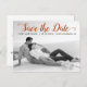 Modern rust script wedding Save the Date photo postcard. This contemporary typography Save the Date design features a black and white photo of the couple and the text "Save the Date" in a modern script font.