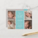Modern birth announcement with 4 photos on the front and one on the back. All the colours can be customised. It can be personalised with your own message and baby stats.