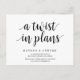 This is the modern minimal simple clean design themed, in Black font, Wedding party invitation Rescheduled (postponed / postponement) postcard (a twist in plans) . It is the perfect and elegant way to make the reschedule announcement to your friends and family.