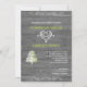 This fun design, called Modern Rustic Barn Wood Wedding, has a washed out grey barn wood pattern background. There is a white scroll calligraphy style design at the top and bottom and a pretty filigree style heart with an arrow separating the bride and grooms' names. A bit lower to the left side there is a tree graphic in white and celery green. The text is in white and celery or lime green as well to really pop off the invitation. Perfect for your rustic country western or outdoor wedding or event. This set has invitations, save the date cards, response cards, thank you cards, table number tent cards, envelope seals, wine labels, binders, return address labels and many more day-of wedding stationery pieces, favours, and gifts available. Use the envelope seal stickers for any of your DIY gifts - these are available in both large and small sizes! All elements are printed on our high quality products, they do not include any real gold, jewels, embossing, or other textile elements. All designs are copyright Noteable Expressions, Inc. All rights reserved.