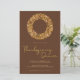Elegant Rustic Thanksgiving Autumn Leaves Wreath Dinner Party Invitation with stylish gold foil style typography featuring a warm watercolor wreath in harvest tones and autumnal shades of pumpkin, merlot, hazelnut brown, and honey gold maple leaves. The background is a modern boho shade of brown and earth tones. Easily add your details and date for a stunning, stylish invitation. Designed by Zazzle Pro Designer BK Thompson exclusively for Cedar & String.