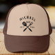 Retro cool custom "BEST DAD EVER" Trucker hat in a logo-style typography design featuring dad's name alongside a grillmaster illustration. Great gift for Father's day or a unique birthday gift for the dad who loves to barbeque.