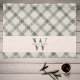 Modern, rustic farmhouse chic monogrammed kitchen towels feature a faded green gingham plaid pattern, with a white band bearing your custom family name and monogram.