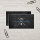 MODERN RUSTIC MONOGRAM Blue Text & Black Wood Business Card
