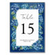 Modern Rustic Navy Blue Hydrangeas Striped Wedding Table Number