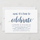 Modern Rustic, Navy Blue Script themed invitation card (with card title: now it is time to celebrate). It is perfect for your wedding elopement reception / post wedding celebration party. Add your details in matching black font / lettering.