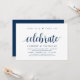 Modern Rustic, Navy Blue Script themed invitation card (with card title: now it is time to celebrate). It is perfect for your wedding elopement reception / post wedding celebration party. Add your details in matching black font / lettering.