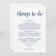 Modern Rustic Wedding Things to do and Itinerary Card, in Navy Blue font.
