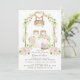 Modern Rustic Outdoor Watercolor Floral Wedding Invitations features a stylish watercolor wedding arch with heart and a table with chairs accented with pink, white and green flowers on a white background. Add your custom QR code on the reverse for your wedding website. Personalised by editing the text in the text boxes provided. Designed by ©Evco Studio www.zazzle.com/store/evcostudio