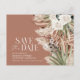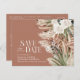 Modern barn farmhouse rustic botanical floral bohemian natural pampas grass and eucalyptus botanical wedding save the date post card invitation. Elegant classy watercolor floral in terracotta, sage green, natural cream and black colorways. Space on the back of this budget wedding save the date for information and QR code for all your wedding details.