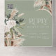Budget modern sage green rustic pampas eucalyptus wedding all in one QR code invite, reply card with space for qr code and website information.