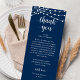 Introducing the perfect finishing touch to your wedding reception - our modern rustic Wedding Thank You Place Setting Card, with card title "Thank you" ! These place setting cards are easy to use - simply place one on top of each dinner card to create a beautiful and thoughtful presentation. Not only will they make your guests feel appreciated, but they will also add a touch of sophistication to your reception. Rustic navy blue, string lights design theme.