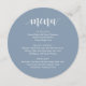 Modern Rustic dusty blue scheme, Round Plate shapes, Wedding elopement Dinner Menu. A perfect bar menu for your big day. You can change the script font colours and change the menu contents and fonts to meet your needs.