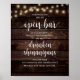 Our Wedding has an Open Bar, it is also being heavily photographed. So all Drunken Shenanigans will be well Document and Thoroughly mocked for years to come poster, in modern rustic design, cottage dark wood, string lights theme.
