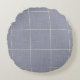 Modern Rustic Windowpane Plaid Linen Blue Round Cushion