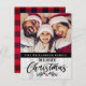 Modern Rustic Wood Family Photo Christmas Card - What a lovely way to send out your holiday greetings this holiday season. Your favourite photo is featured on this very special Christmas card and the card is personalised with your family name and Merry Christmas in pretty, modern script typography, and is accented with wood. The back of the card is festive, trendy red buffalo plaid. Card is part of a collection.