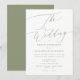 Modern Sage Green and White Simple Wedding Invitation for a modern wedding formal or informal. Sage and white with impressive modern calligraphy.