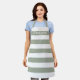 Modern sage green and white stripes pattern custom name, text or monogram simple elegant apron.