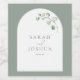 Modern Sage Green Arch Botanical Script Wedding Wine Label