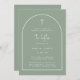Modern Sage Green Arch Script Minimalist Baptism Invitation