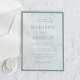 Announce your wedding with understated elegance using this sage green border acrylic wedding invitation. A soft sage green frame surrounds the design on a clear acrylic background, creating a refined contrast that feels timeless and effortlessly sophisticated. Coordinating sage green serif lettering paired with a calligraphy script accent adds a balanced and graceful finish to the minimalist layout. Ideal for formal ceremonies, garden weddings, and modern classic venues, this acrylic invitation offers a versatile foundation that sets a polished, elevated tone for a cohesive wedding stationery suite.