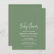 Modern sage green budget baby shower invitation featuring a simple design with the event title in an elegant script typography and your event details in a minimalist sans serif font. This chic baby shower invitation is gender neutral, making it perfect whether you are having a baby boy or baby girl and is great for a fall / autumn baby shower.