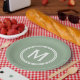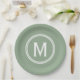 Modern Sage Green Custom Round Framed Monogram Paper Plate