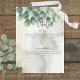 This design features a soft sprig of green blurred eucalyptus sprinkled with faux gold splatters. It's part of the Modern Soft Green Eucalyptus & Gold Wedding Suite created by Simply Farmhouse Press.