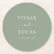 Modern Sage Green Formal Minimal Wedding Round Paper Coaster