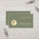 Modern Sage Green Gold Feather Logo Notary Service Business Card