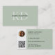 Modern minimalistic sage green, white amd black professional card design featuring a QR code and a custom photo.