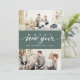 Welcome the New Year with a personal touch using our Modern Sage Green Photo Collage New Year Holiday Card! This exclusive card showcases two cherished photos, elegantly separated by a horizontal "Happy New Year" script along with your family name and date, creating a uniquely personalised greeting.