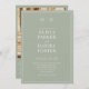 Celebrate your wedding in style with this modern sage green wedding invitation featuring space for your favourite photo and a built-in QR code. The minimalist layout combines soft sage tones with clean editorial typography, creating a timeless yet contemporary look. The QR code makes it easy for guests to RSVP or access your wedding website instantly. Perfect for couples looking for a fresh, modern invitation that blends elegance with functionality.