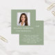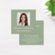 Personalise this minimalist sage green profile card template. Customise the modern white script with your name and professional contact information. Add your photograph to the photo template to this square business card. Add your business or corporate address for a stylish professional business card. The muted sage green or eucalyptus green is trendy. The minimalist script can be edited with your custom text.