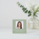 Personalize this minimalist sage green business card template. Customize the modern white script with your name and contact information. Add your photograph to the photo template. Add your business or corporate address for a stylish professional business card. The muted sage green or eucalyptus green is trendy. The minimalist script can be edited with your custom text.