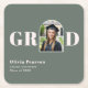 These custom paper coasters are perfect for graduation open houses, brunch celebrations, or evening receptions. Featuring a trendy sage green and blush pink background, and a unique arch-shaped photo frame within the "GRAD" typography, these coasters make a stylish addition to your big day. Simply upload a favorite photo, and enter the graduate's name, school, and class year. A fun addition to your graduation party decor.
