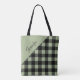 Modern Sage Green Plaid Pattern Name Tote Bag