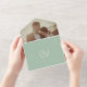 Make a statement with a modern and elegant wedding invitation for your big day! This all-in-one design combines classic typography and swirling calligraphy over a photo of the wedding couple, along with a convenient QR code for guests to RSVP. Save time for both you and your guests with this time-saving feature. The stylish sage green colour with a monogram on the backside adds a touch of sophistication. Customise the invitation with your own photo, details, colours, and fonts to make it uniquely yours. Perfect for couples seeking a simple yet formal wedding invitation that reflects their personal style.