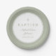 Modern Sage Green Religious Cross Baptism Paper Plate