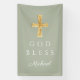 Custom Name Modern Sage Green Religious Cross God Bless Banner.