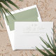 Modern sage green script calligraphy white wedding envelope. Present your wedding invitations in style with these envelopes featuring whimsical sage green script calligraphy. The envelope flap provides an excellent opportunity for personalisation, allowing you to feature your initials and names in graceful script typography, beautifully complemented by your return address.